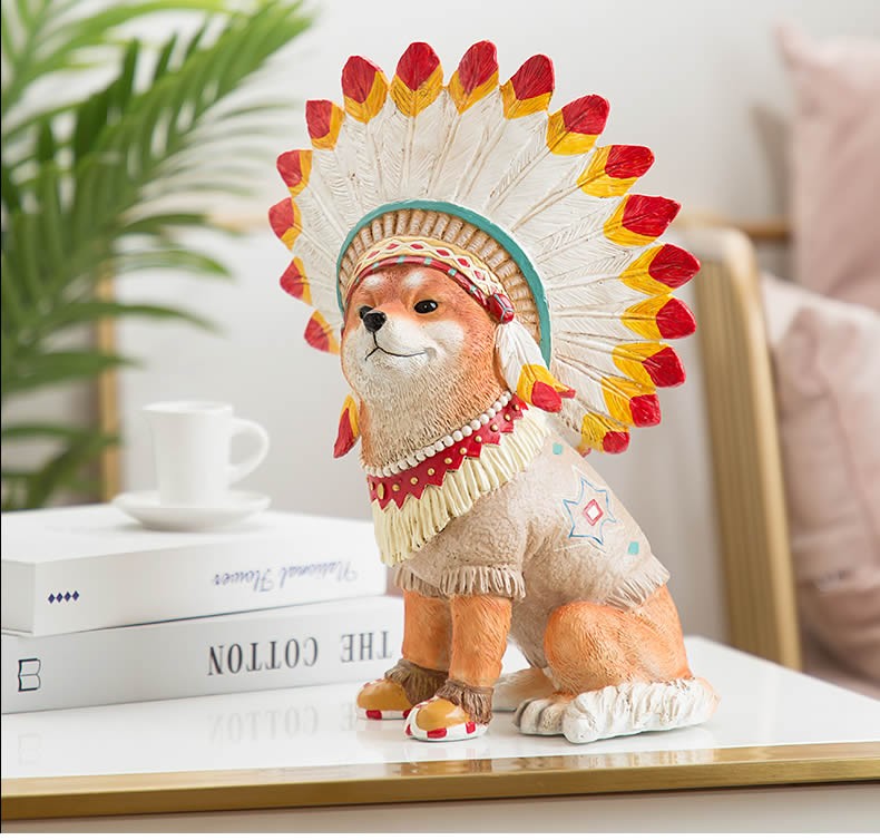 - Amusing Native American Style Shiba Inu Dog Sculpture Figurine