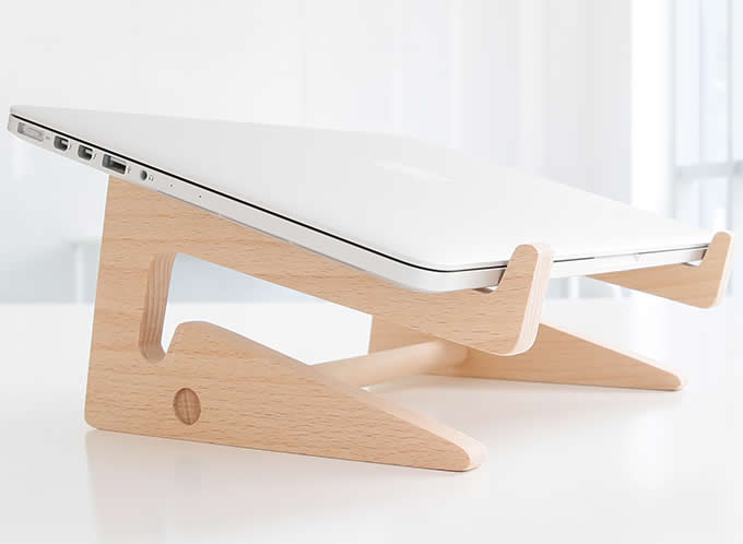 The laptop wooden stand can be folded up when not in use. The ultra-thin design make it easy to carry