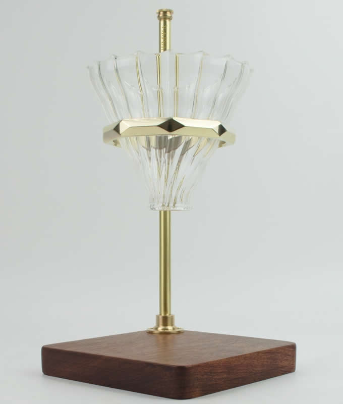 Crafted with an adjustable,industrial-style brass arm, a rustic wood base and a clear glass cone dripper, pour-over coffee stand is a stunning, affordable gift for slow-brew coffee aficionados.;Crafted of wood and metal with brass finish Includes glass cone coffee dripper.;For use with #4 coffee filters, not included;This drip coffee maker is gorgeous to look at, functional, makes great tasting coffee and is a conversation piece to boot.