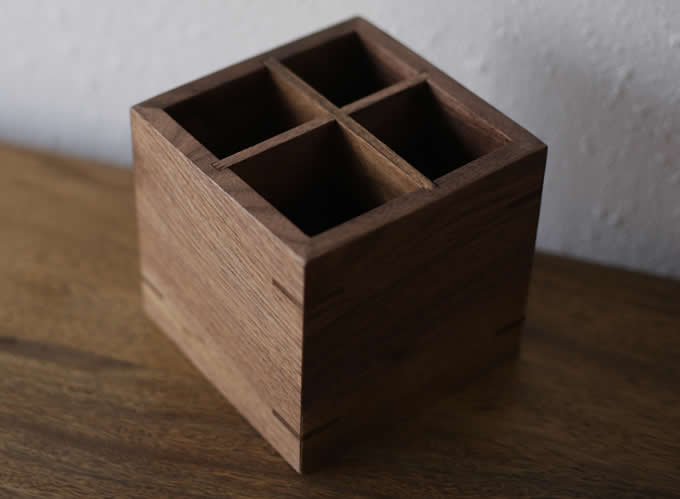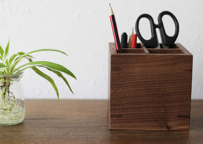 Black walnut Wooden 4 Compartments Desktop Storage Organizer Pen Pencil Holder